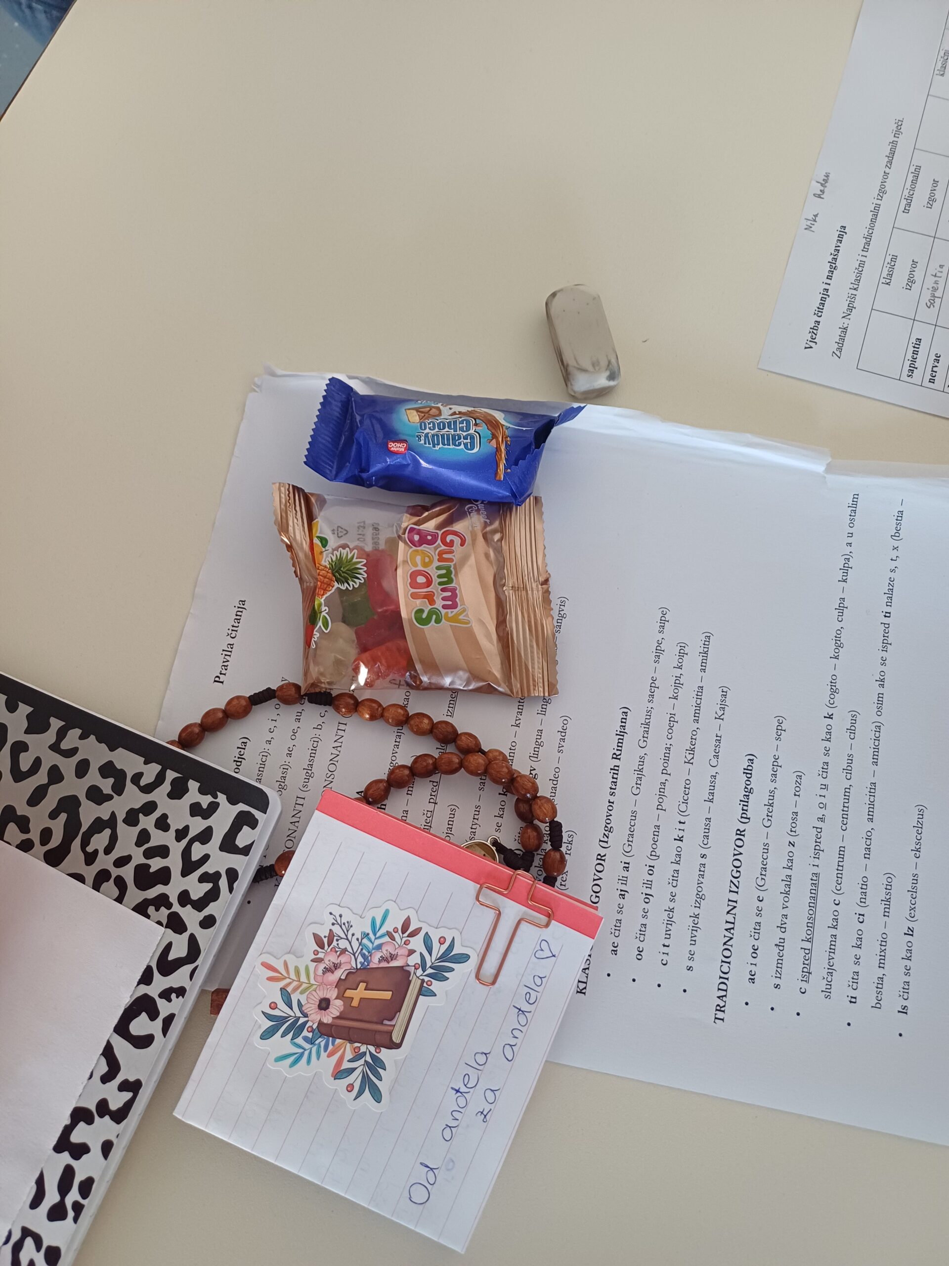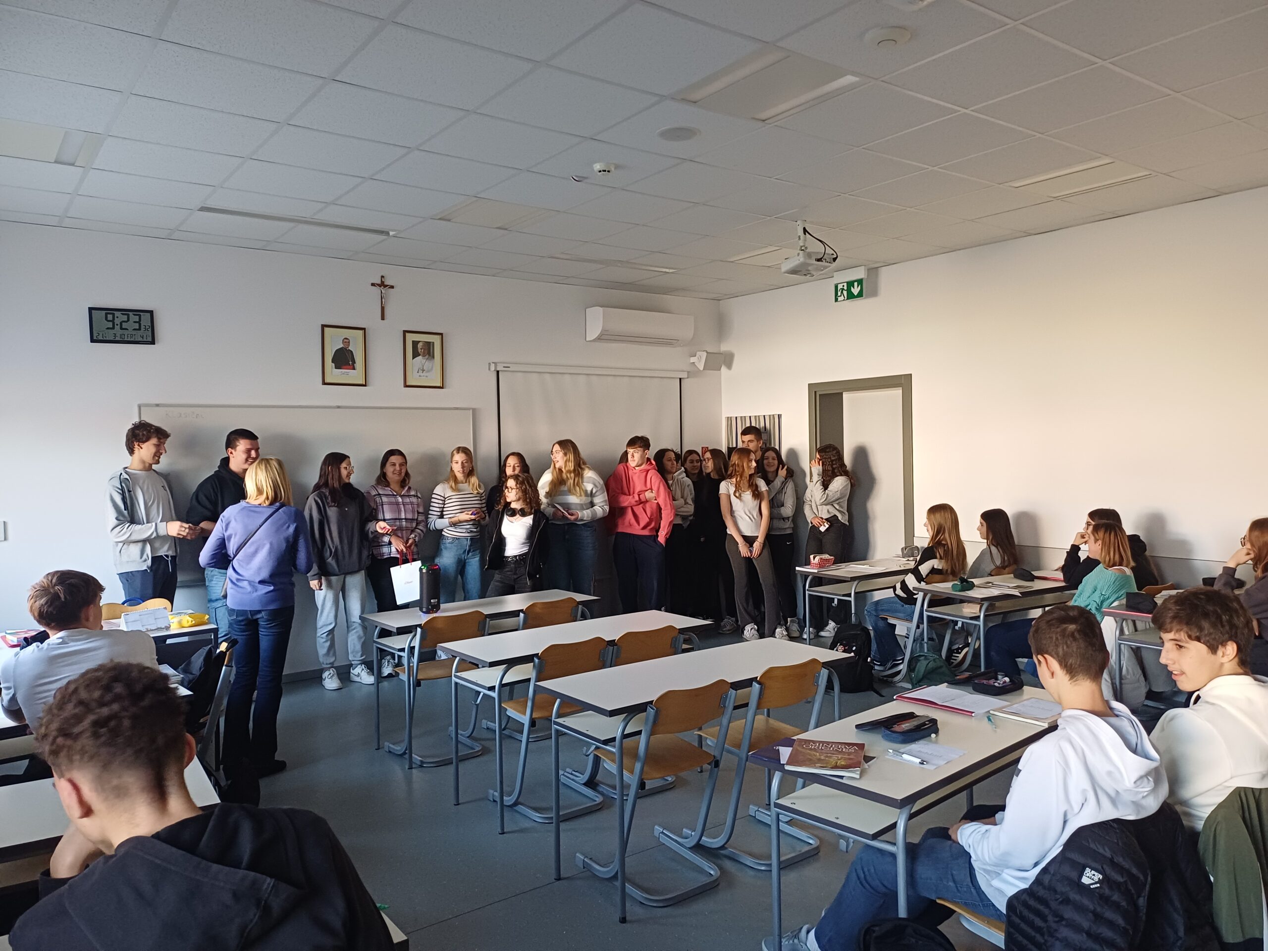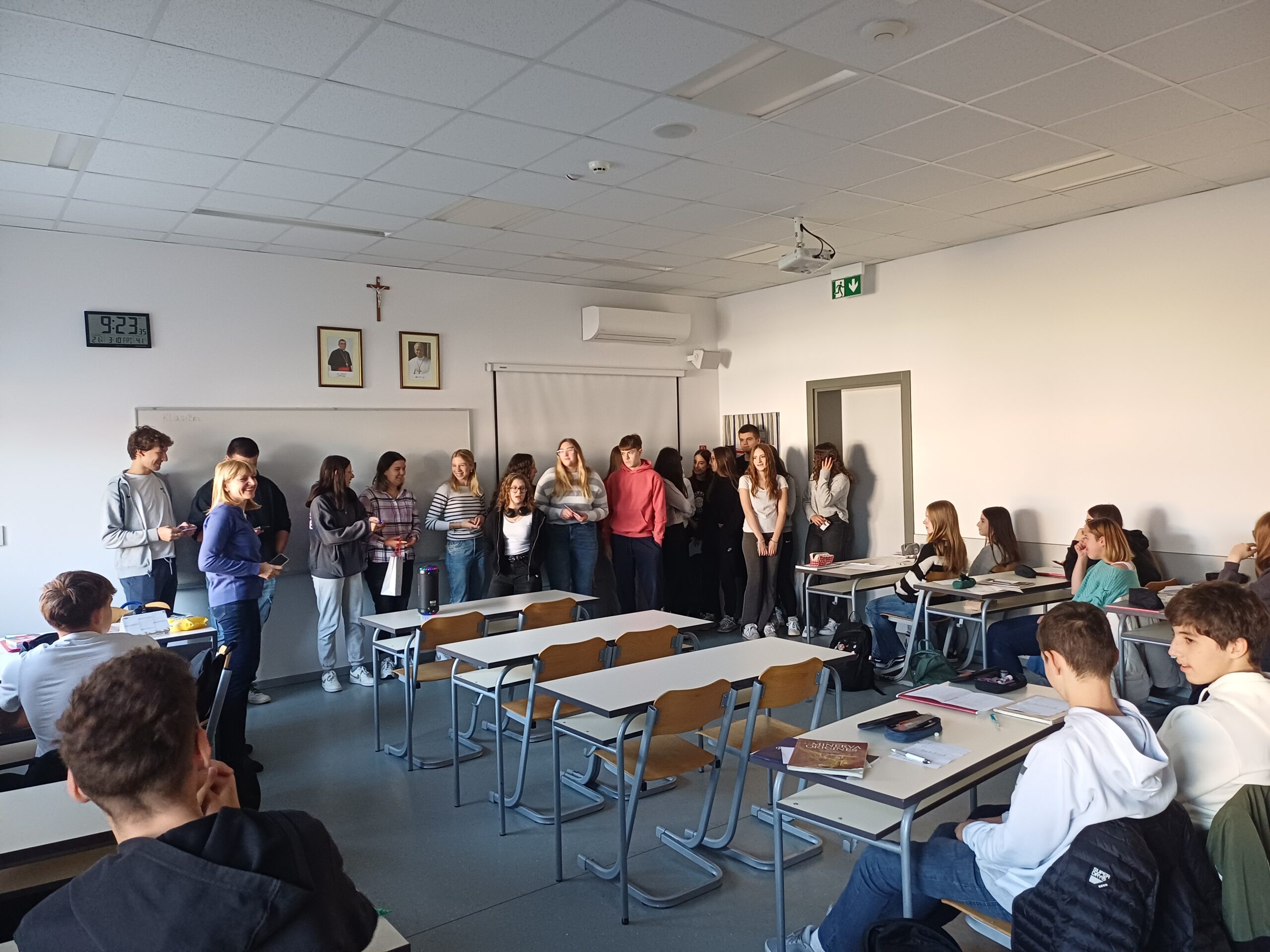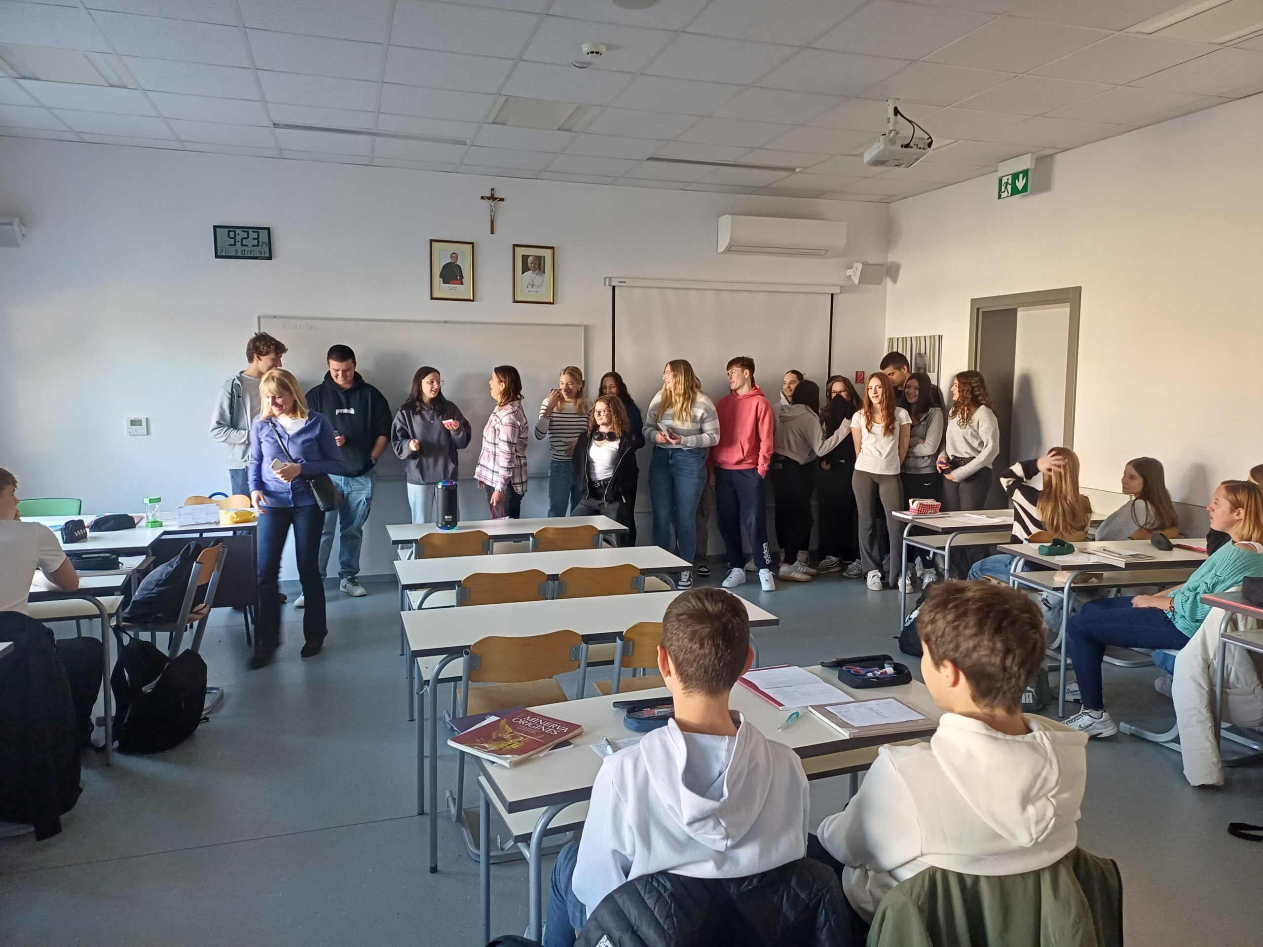 U petak, 3. listopada 2025. godine, pod satom Latinskoga jezika i Biologije, učenici 1. i 3. razreda zajedno sa svojim razrednicama održali su već poznati školski projekt “Anđeli čuvari”. Svaki učenik 3. razreda dobio je svog štićenika iz 1. razreda kojem je trebao pomagati od početka nastavne godine sve do današnjeg otkrivanja. Uz glazbu i malo slatkiša, učenici su proveli ovaj sat u ugodnoj i prijateljskoj atmosferi.