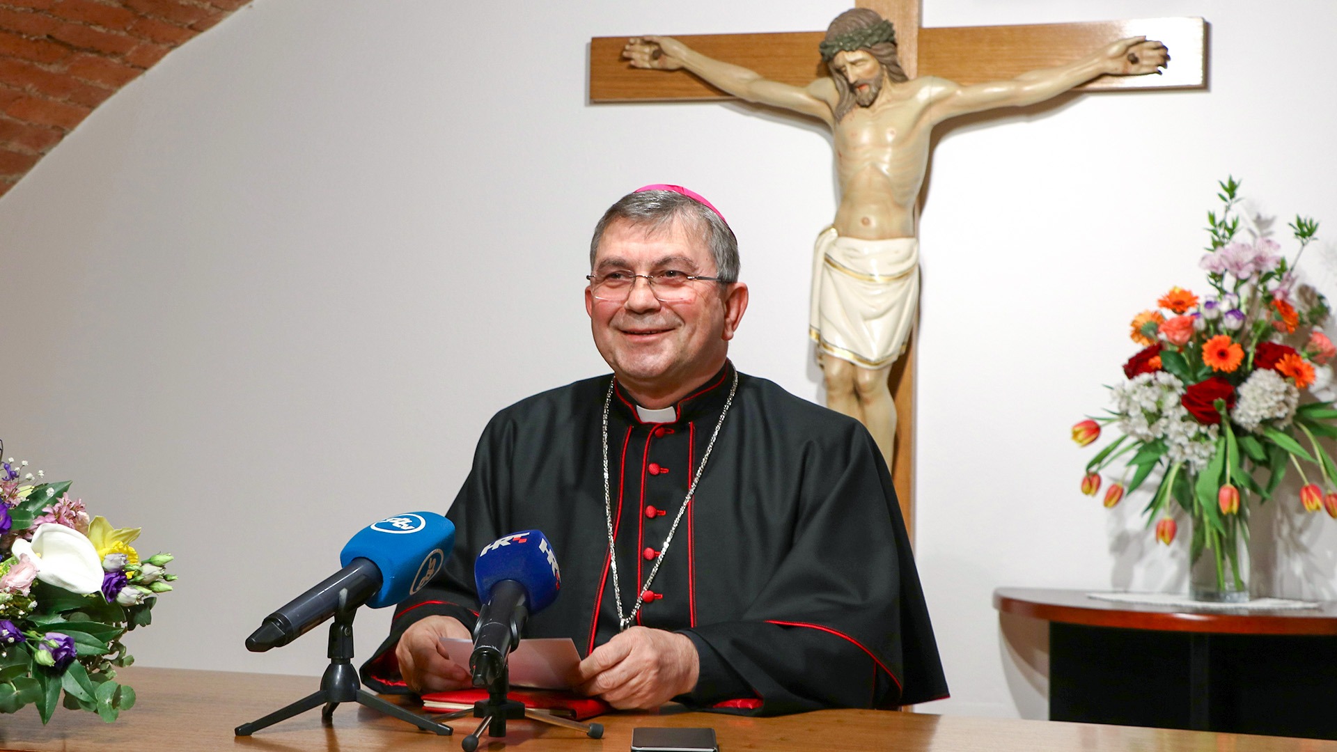 U Dvorani bl. Alojzija Stepinca, požeški biskup Ivo Martinović susreo se 31. ožujka 2026. s djelatnicima medija i tom prigodom predstavio svoju Uskrsnu poruku pod naslovom “Vidje i povjerova” (Iv 20,8).