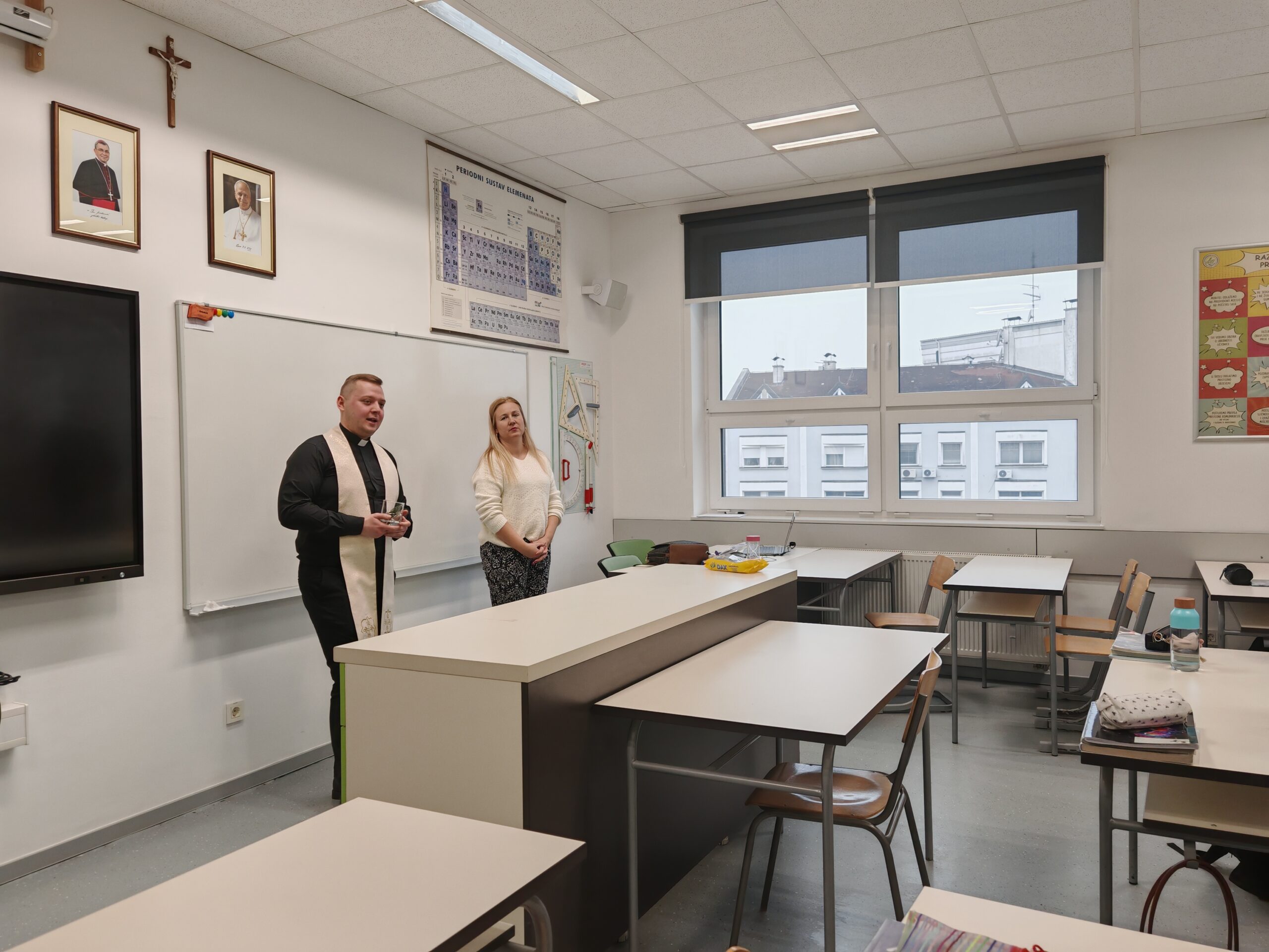 Blagoslov škole, koji je predvodio vlč. Karlo Topalović, protekao je u ozračju molitve i zajedništva, tijekom kojega smo zazvali Božji blagoslov za sve učenike, učitelje i djelatnike naše škole. Bio je to trenutak zahvalnosti, ali i nade te ohrabrenja za nastavak školske godine ispunjene mirom, uspjehom i međusobnim poštovanjem.
