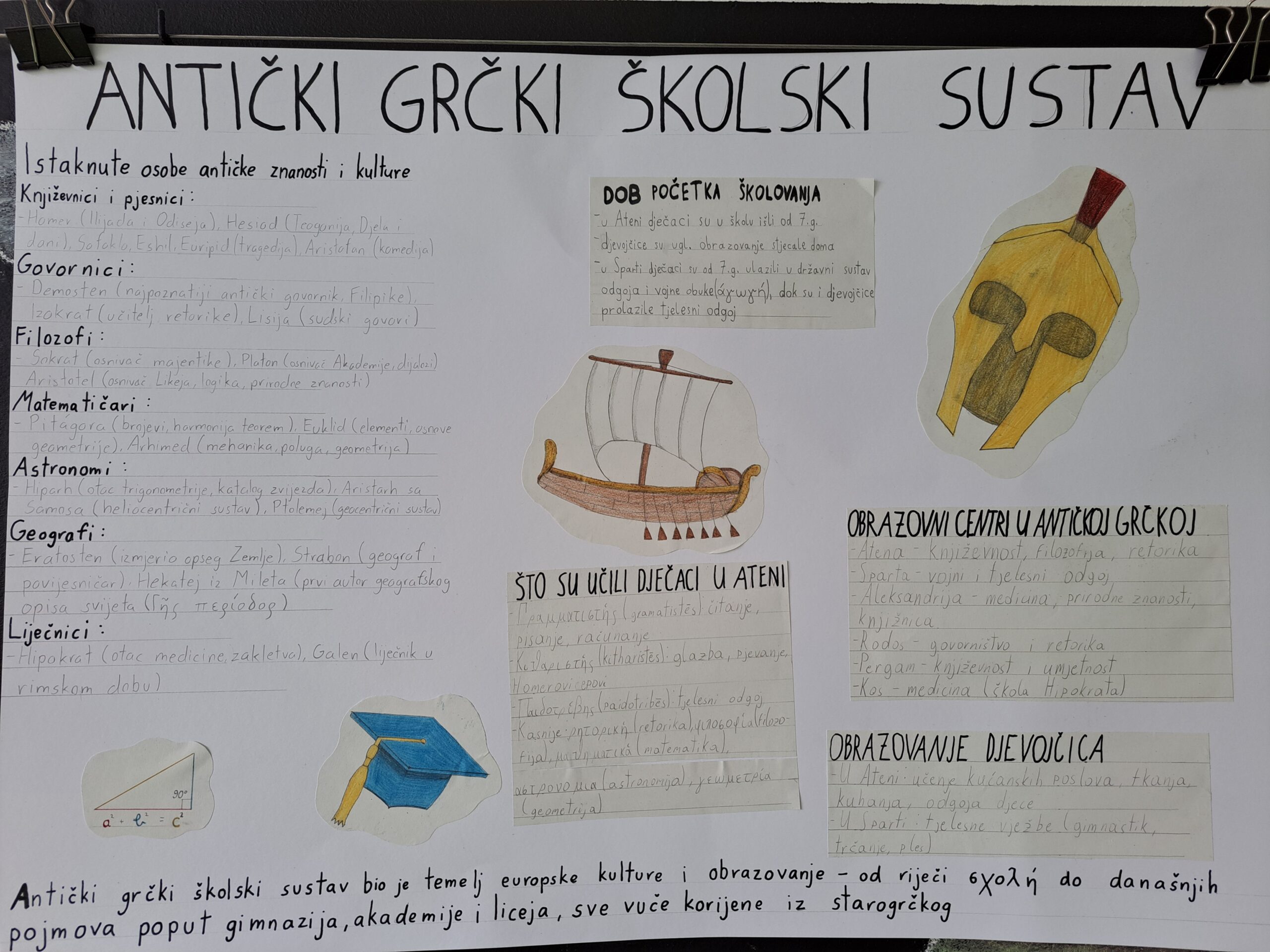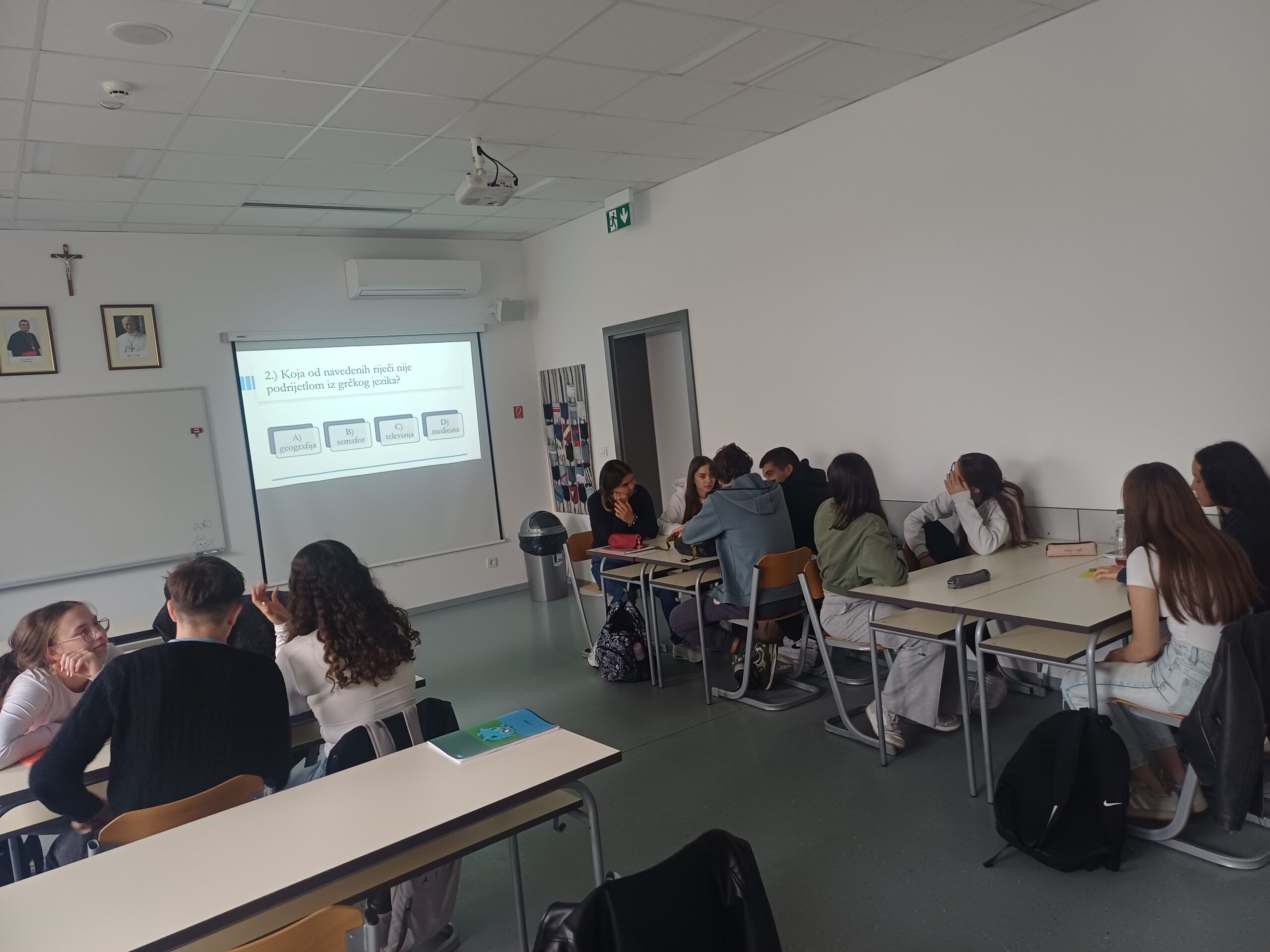Na nastavi grčkog jezika obilježili smo Europski dan jezika izradivši 2 plakata o antičkom i modernom grčkom školskom sustavu i doprinosu antičkih Grka u raznim poljima ljudske djelatnosti. Kao kuriozitet možemo izdvojiti da je Aristarh sa Sama naučavao o heliocentričnom sustavu tisućljeće prije Kopernika.