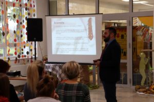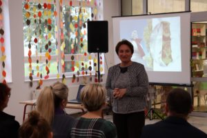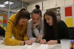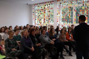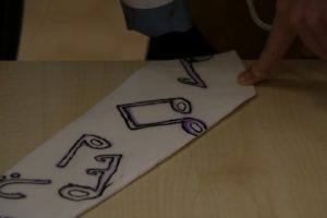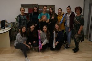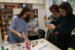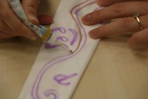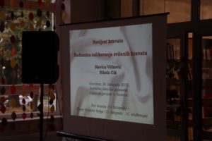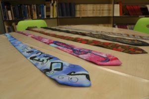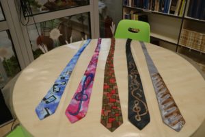 Radionica je održana 30. listopada 2019. u školskoj knjižnici pod vodstvom gospođe Slavice Vitković i prof. povijesti Nikole Cika. Radionica se sastojala od uvodnog dijela – predavanja prof. Cika o povijesti kravate, a nakon toga, prijavljeni učenici uputili su se u školsku knjižnicu gdje su zajedno s gospođom Slavicom Vitković oslikavali kravate s notnim motivima. Na radionici je sudjelovalo dvanaest učenika. Ovim događajem smo nastavili tradiciju druženja s našim gostima koji su nas posjetili i prošle godine kada smo oslikavali svilene marame s motivima glagoljice. Učenici su na kraju radionice pokazali oduševljenje tehnikom oslikavanja svile i zaželjeli da se ovakve kreativne radionice nastave.