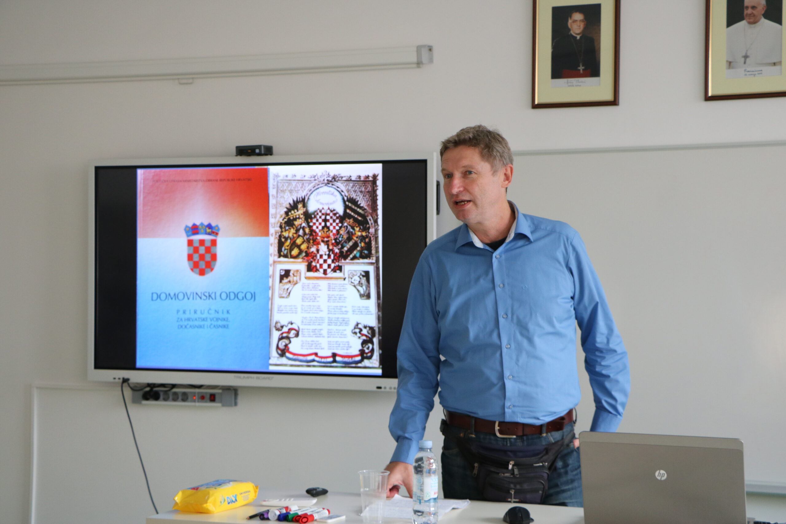 Prošli tjedan smo obilježili Dan sjećanja na žrtve Domovinskog rata i žrtvu Vukovara i Škabrnje. Kako je ove godine 30 godišnjica od tih tužnih i teških događaja, željeli smo je obilježiti na jedan poseban i drugačiji način, pa smo u goste pozvali doc. dr. sc. Antu Nazora (https://centardomovinskograta.hr/704/), ravnatelja Hrvatskog memorijalno-dokumentacijskog centra Domovinskog rata koji je u četvrtak 25. studenoga 2021. učenicima i djelatnicima Katoličke klasične gimnazije održao vrlo poučno i zanimljivo predavanje. Kao vrhunski znanstvenik i poznavatelj povijesti Domovinskog rata, koji je i sam bio hrvatski branitelj, naš je gost držeći se arhivskih dokaza i povijesnih činjenica, održao stručno predavanje o kontinuitetu velikosrpske politike kao uzroku Domovinskog rata te o početku i tijeku bitke za Vukovar čime smo još jednom obilježili 30. godišnjicu sloma obrane grada Vukovara.