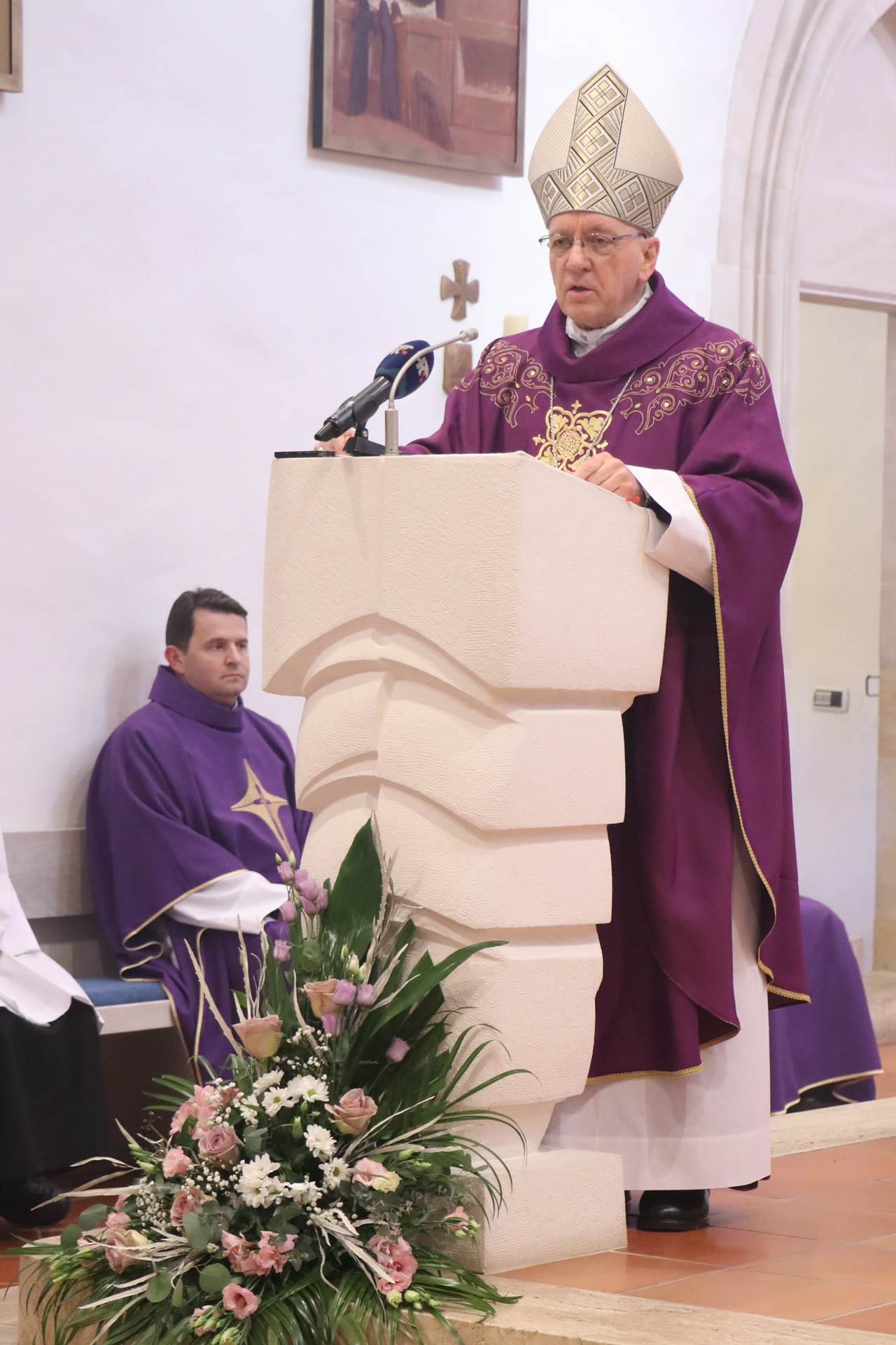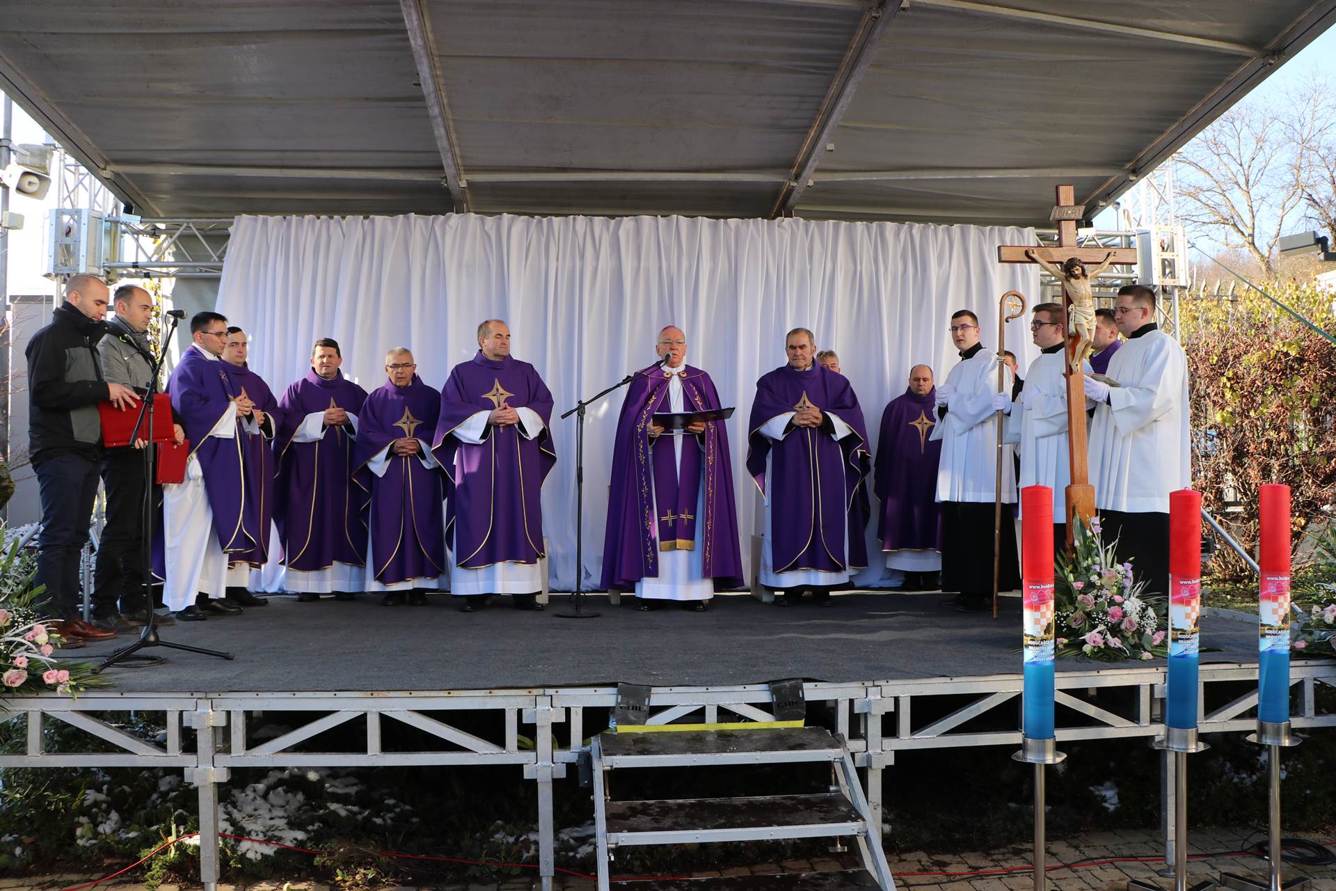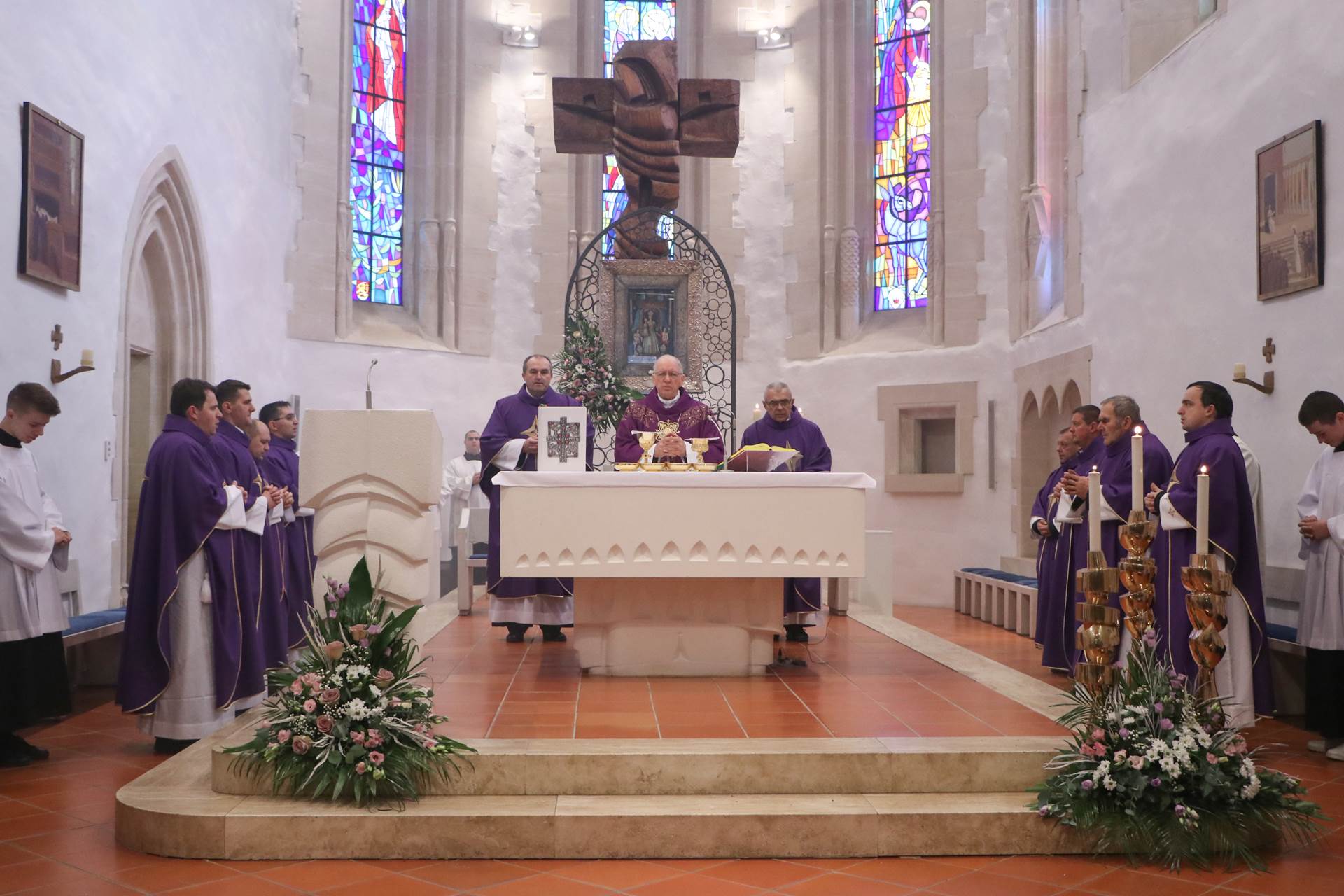 Nakon posjeta Geo info centru, uputili smo se prema Svetištu Gospe Voćinske gdje je msgr. Antun Škvorčević, požeški biskup, predvodio euharistijsko slavlje prisjećajući se nevinih koji su na taj datum ubijeni, ali i svih branitelja koji su položili život za Domovinu. Naime, Crkva Pohođenja Blažene Djevice Marije, koja je danas svetište, bila je više puta u povijesti razorena, a posebice u Domovinskom ratu, ali kako je i sam biskup naglasio, nije razorna mržnja ta koja ima glavnu riječ, već ljubav graditeljica.