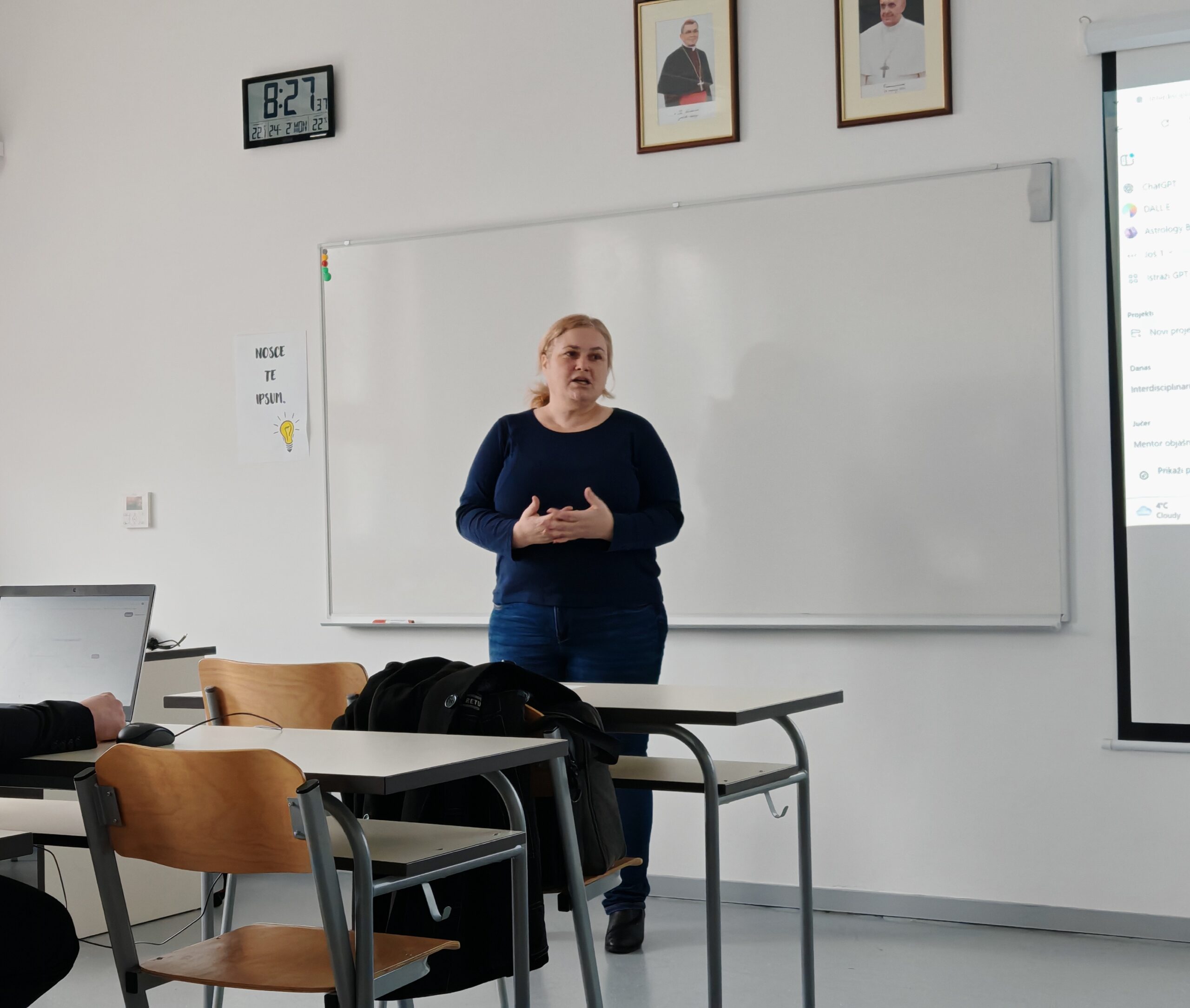 U ponedjeljak, 24. veljače, u Katoličkoj klasičnoj gimnaziji održano je stručno usavršavanje za nastavnike i stručne službe. Prva radionica, pod nazivom “Alati umjetne inteligencije u službi nastavnog osoblja”, održana je pod vodstvom Marijane Špoljarić, profesorice s Veleučilišta u Virovitici. Profesorica Špoljarić predstavila je kako umjetna inteligencija može olakšati rad nastavnika i unaprijediti obrazovni proces.