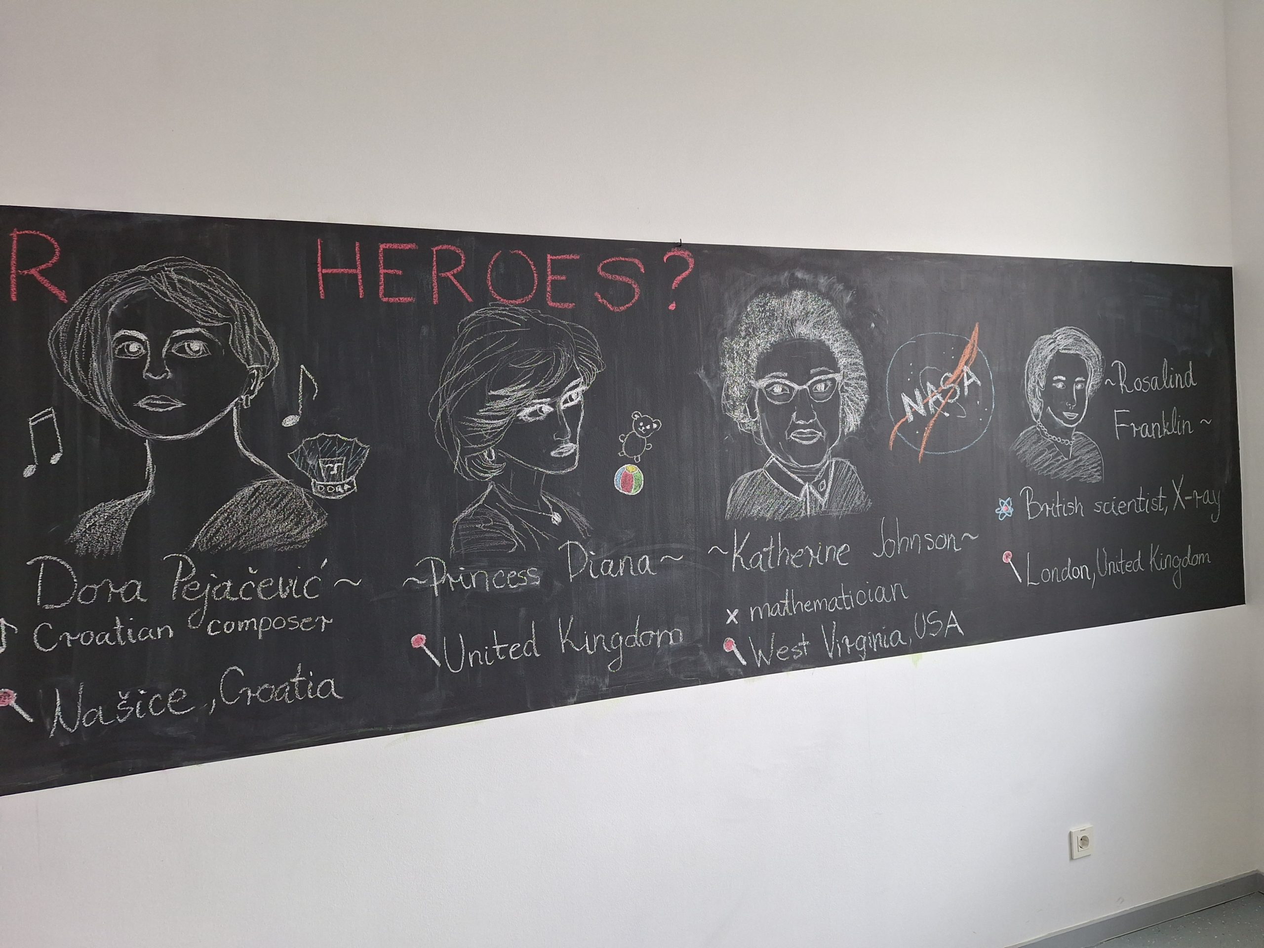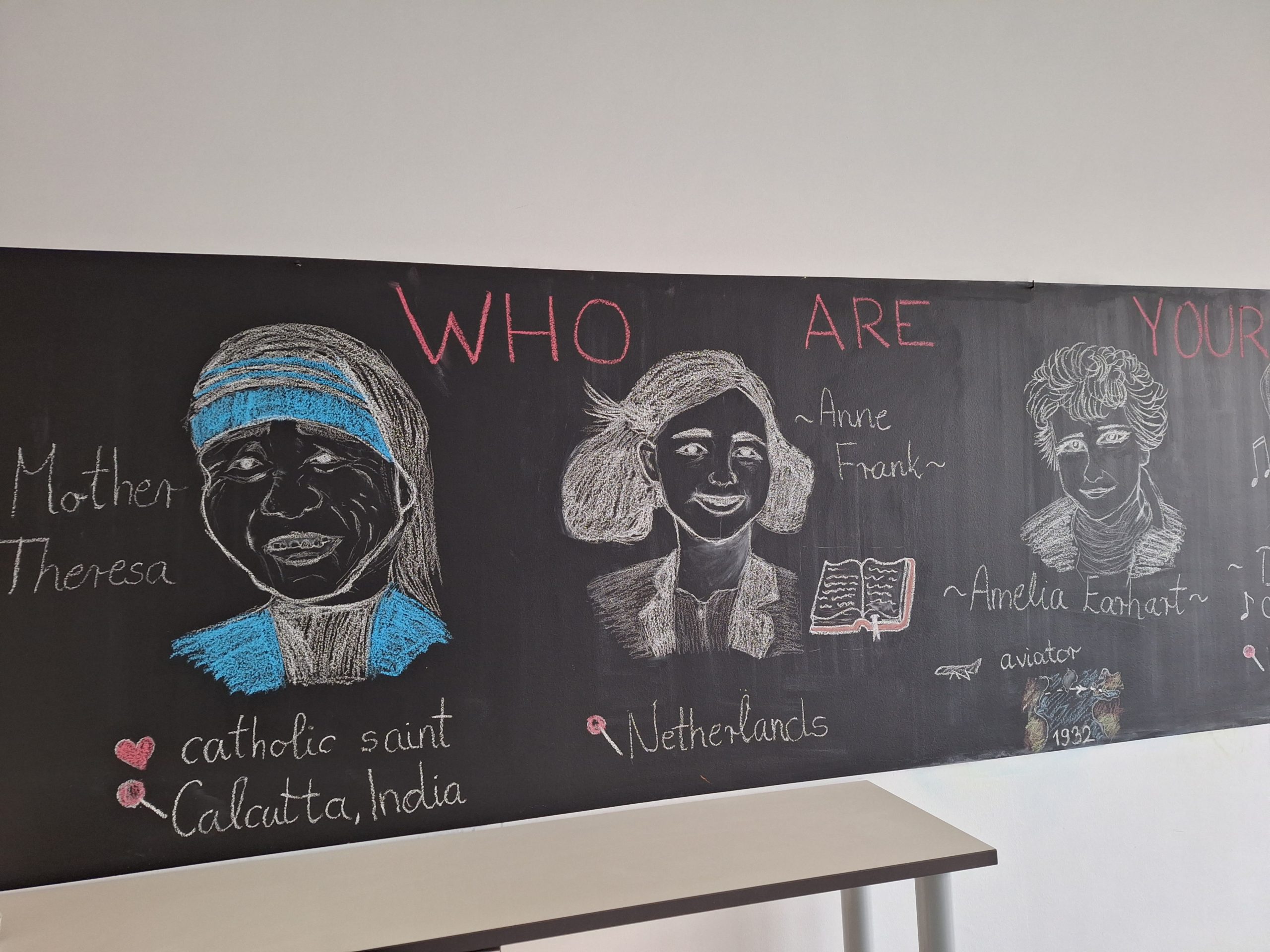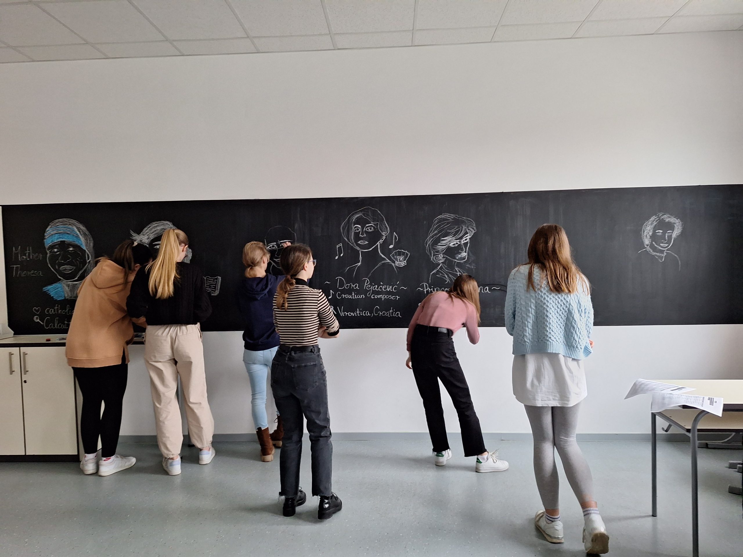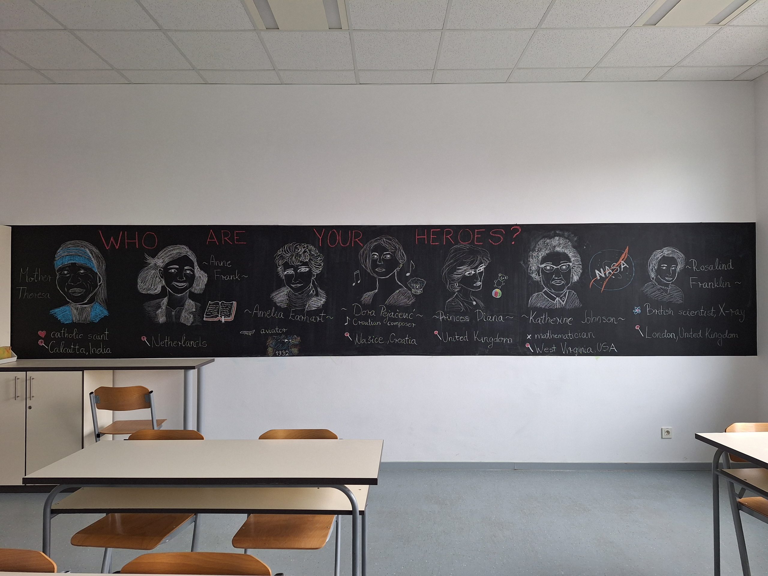 Nepokolebljiva zbog gluhoće i sljepoće, američka spisateljica, humanitarka i edukatorica 20. stoljeća, Helen Keller postala je velika inspiracija svima i zagovarateljica prava osoba s invaliditetom. Potaknuti pričom o Helen Keller, učenice i učenik 4.r. naše škole su s nastavnicom engleskoga jezika promišljali o ženama koje su svojim dostignućima i djelovanjima ostavile trag na čovječanstvo. U mnoštvu prijedloga našle su se spisateljice, znanstvenice, matematičarke, kemičarke, skladateljice i humanitarke te su tom prigodom ispunili ploču u učionici njihovim portretima. Žene čija hrabrost i neustrašivost, predanost i mudrost, ljubav i suosjećanje su inspiracija svima nama jesu naše majke i bake, sestre…, uzor u poniznosti i ljubavi prema Kristu, „žena nad ženama“, naša Nebeska Majka.