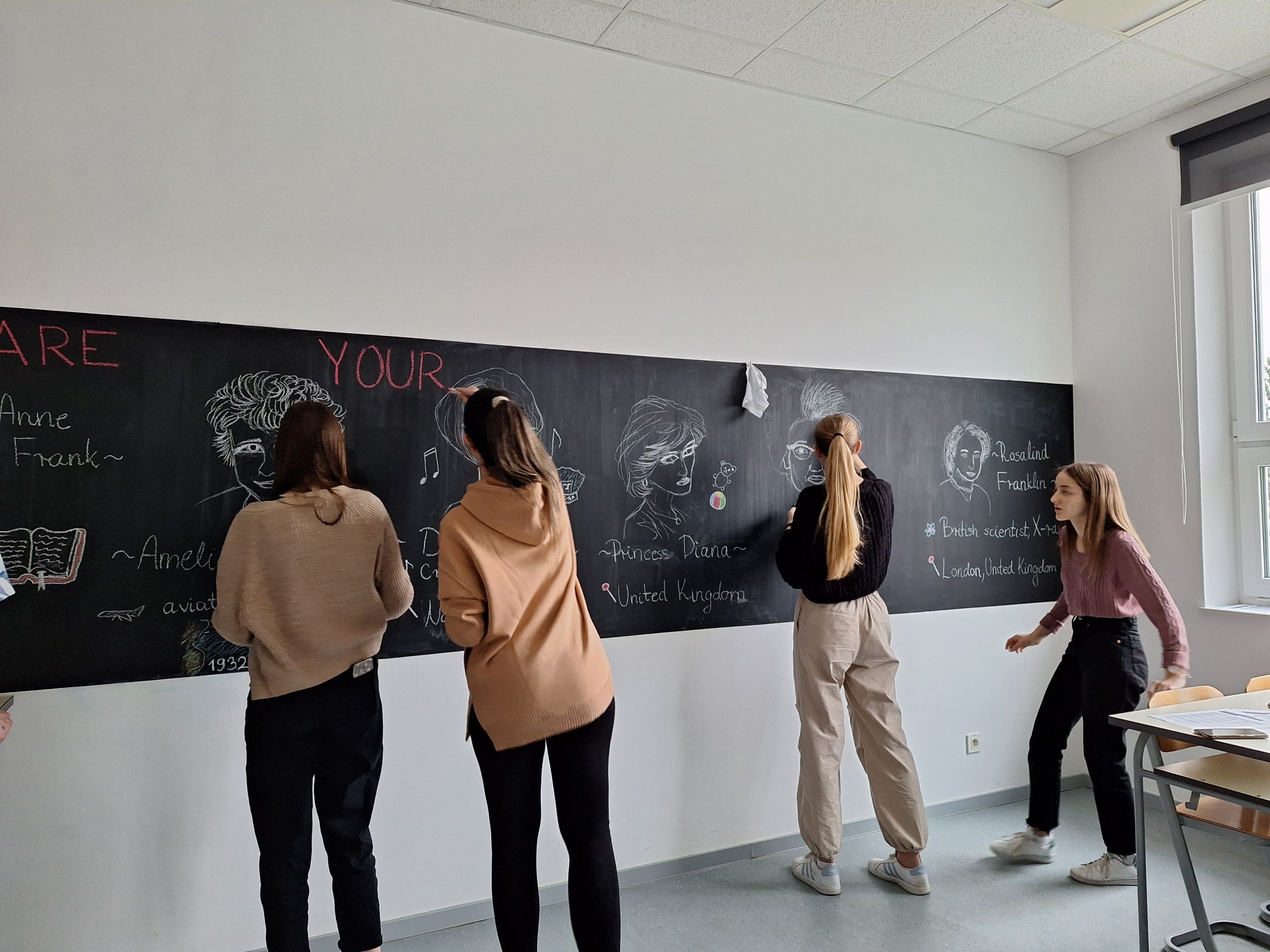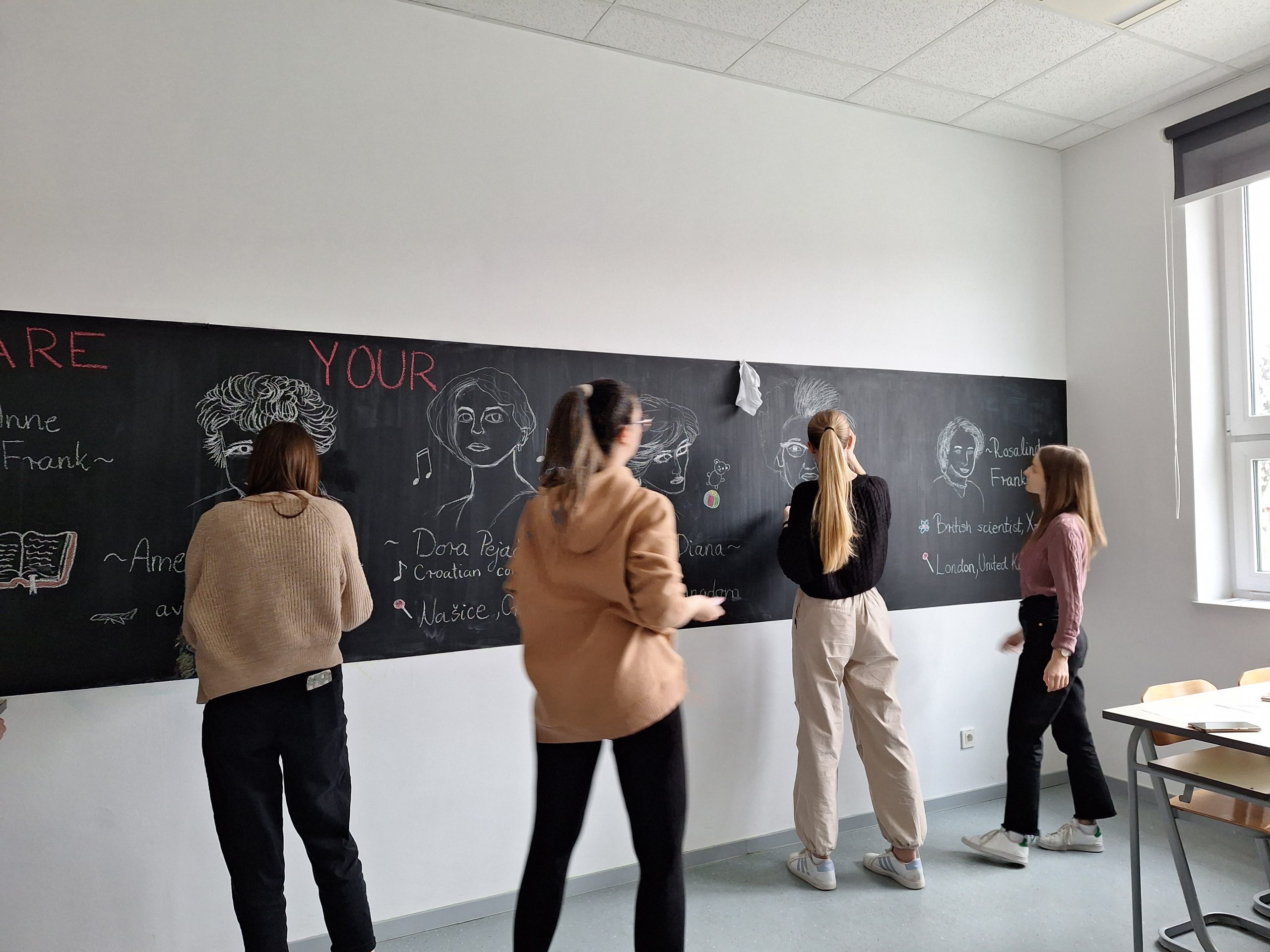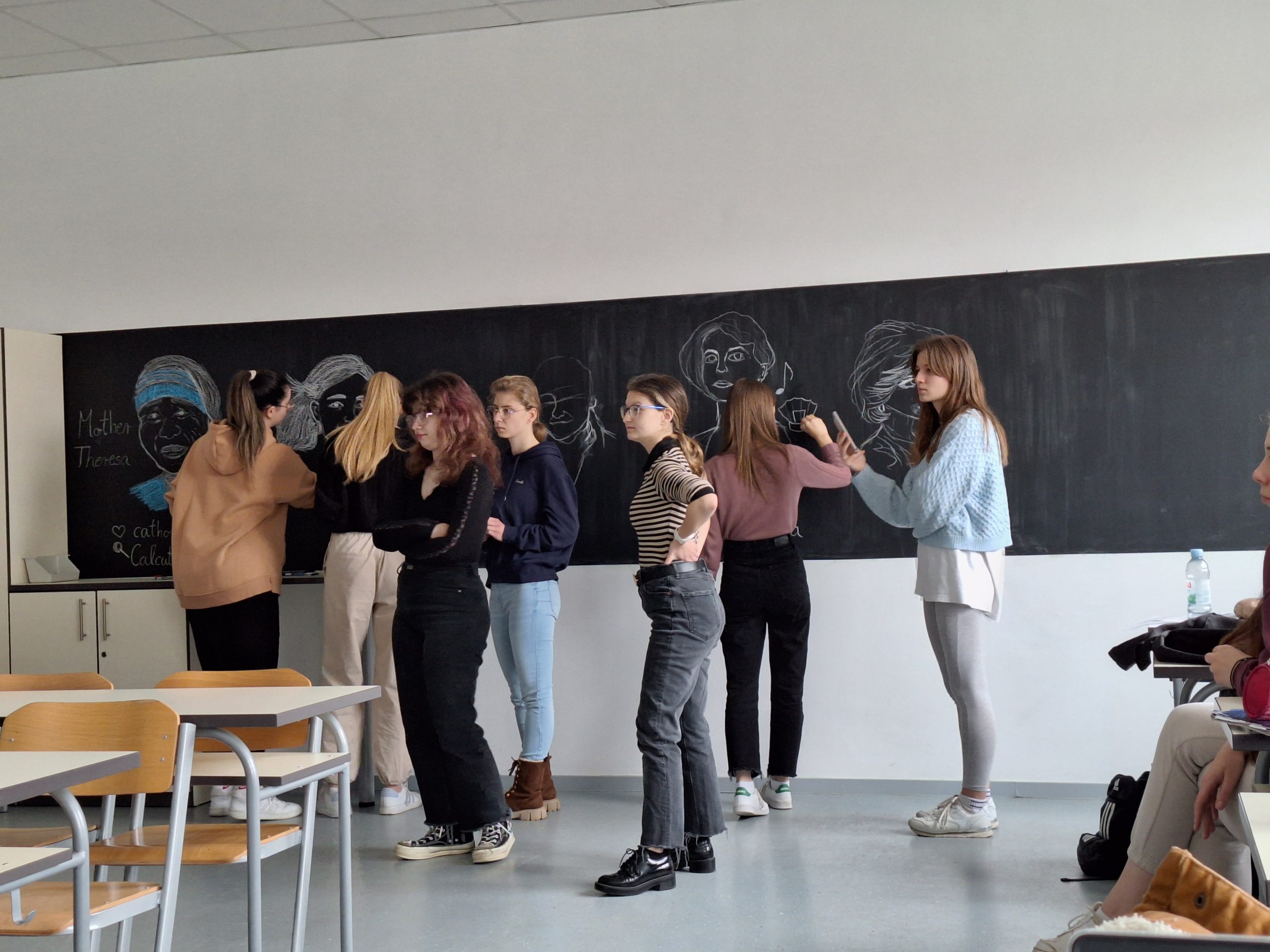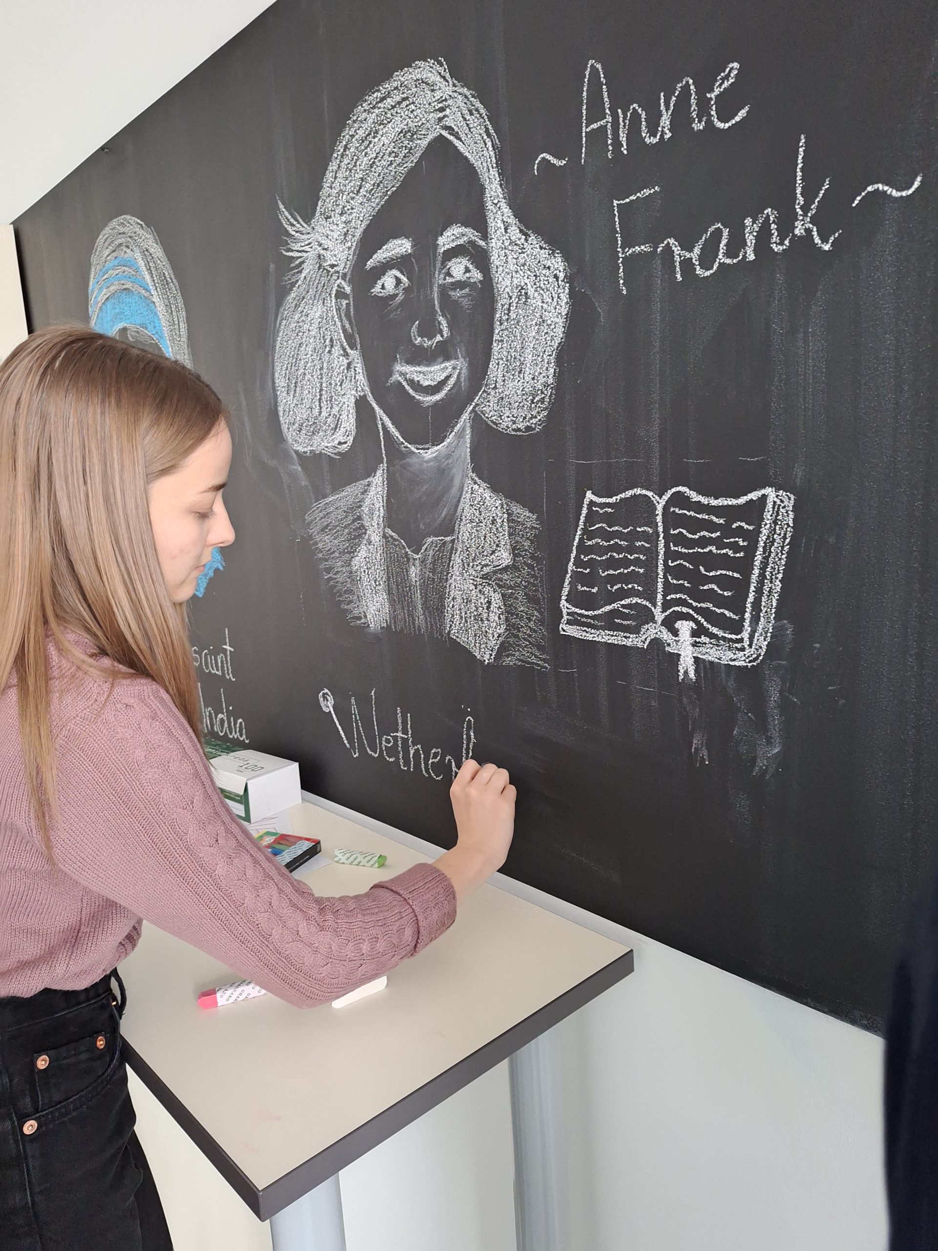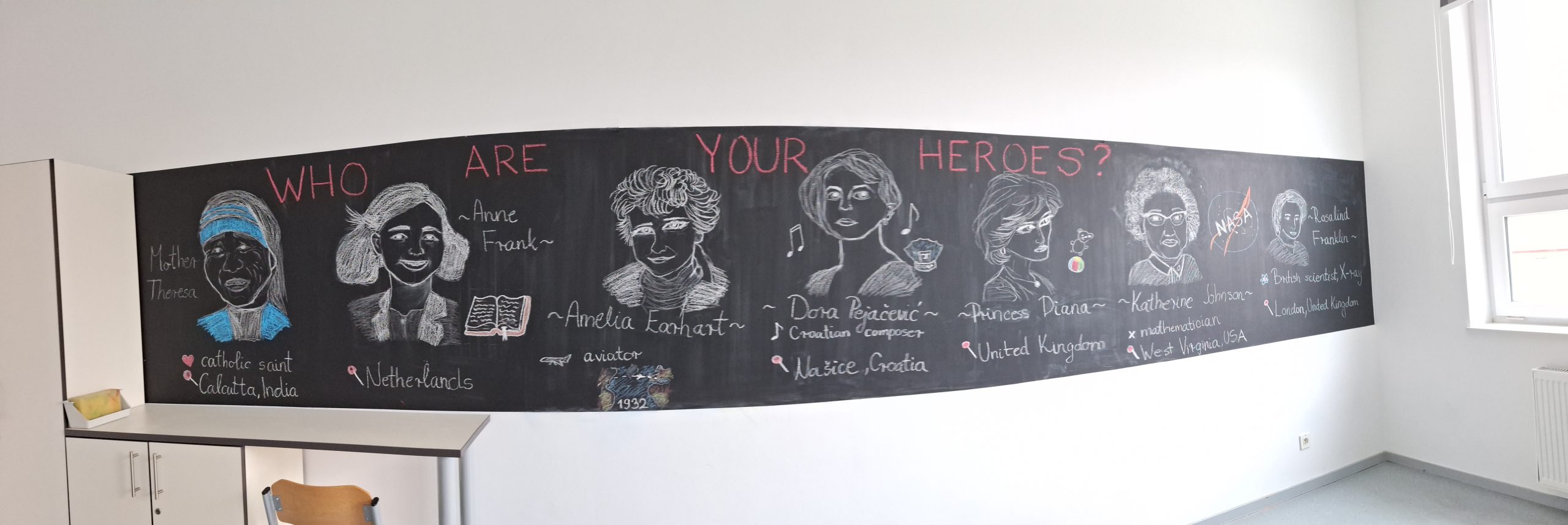 Nepokolebljiva zbog gluhoće i sljepoće, američka spisateljica, humanitarka i edukatorica 20. stoljeća, Helen Keller postala je velika inspiracija svima i zagovarateljica prava osoba s invaliditetom. Potaknuti pričom o Helen Keller, učenice i učenik 4.r. naše škole su s nastavnicom engleskoga jezika promišljali o ženama koje su svojim dostignućima i djelovanjima ostavile trag na čovječanstvo. U mnoštvu prijedloga našle su se spisateljice, znanstvenice, matematičarke, kemičarke, skladateljice i humanitarke te su tom prigodom ispunili ploču u učionici njihovim portretima. Žene čija hrabrost i neustrašivost, predanost i mudrost, ljubav i suosjećanje su inspiracija svima nama jesu naše majke i bake, sestre…, uzor u poniznosti i ljubavi prema Kristu, „žena nad ženama“, naša Nebeska Majka.